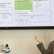 Ms. Xinyue Wang presents the work of the Center at the 2023 Conference of the Engineering Mechanics Institute in Atlanta. She is paving the way for class vulnerability curves for transmission towers.